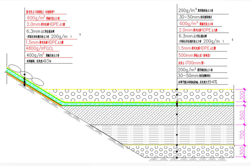 結構設計:可使填埋場整體結構最穩(wěn)定,避免出現(xiàn)坍塌、下滑等現(xiàn)象